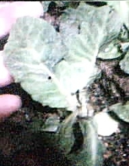萎びた苗の植えつけたところが広くて土が焦げちゃで見えている