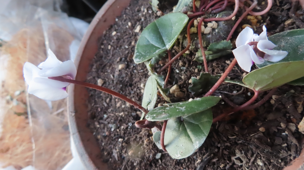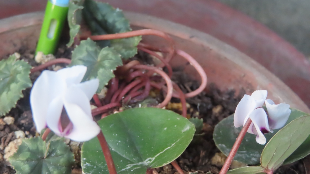 シクラメンは1つの花が1~2か月咲き続けるのでうれしい花ですにゃ 丸葉で丸花でかわゆすな~コウムたんかわゆす