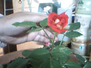 めっちゃミニチュアだけど 春から30年ぶりに花を咲かせてみて初の真っ赤