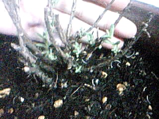 適当に数センチずつ切っていって枝の中が白X緑が見えたところで止めたらこの状態で 芽が出てきた