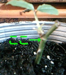 ニーム粉を少し土にたして埋め埋め 挿し木スタートから芽が育ってでた双葉もいまだに順調に緑っす