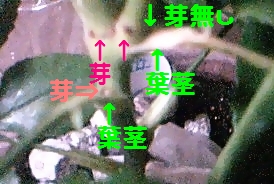 茎鉄片から4番目に咲いてない芽がめっちゃ膨らんできている