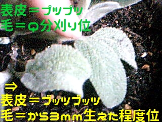 到着@1週間位で生えた葉 少し毛がモフってきてるものの 表面はまだすこしプツプツ で?この穴なに。。。 穴なんて1個も開いてない苗で一応葉っぱきれいだったのにな